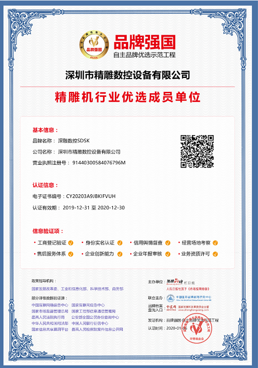 深圳市精雕數控設備有限公司2020年正式加入(品牌強國)自主品牌優選示范工程