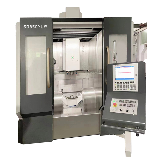 機床采用高精密DD轉臺,傳動應用的是目前最精密的運動控制方式-弧面分度原理,反向無間隙、定位精度高,回轉由伺服電機驅動,液壓自動夾緊,運動準確可靠。加工范圍廣,C軸連續回轉,從而實現高回轉精度