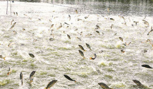 2.增加水體溶氧。有增氧設備的可在晴天中午堅持開啟增氧機2小時以上,遇到陰雨天或天氣突變,要及時開啟增氧機。如無增氧機的可采用潛水泵在池內打循環(huán)水(時間在下午3時前,切忌在傍晚進行),增強水體的對流與交換。