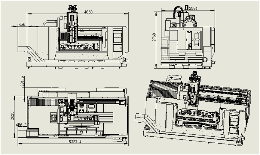 1. SD3050-ZYB-BT40是專門為客戶量身定做的大型3米主軸搖擺式加工中心;天軌式機(jī)構(gòu);運(yùn)動方式為Y軸工作臺前后移動,X軸機(jī)頭左右移動,Z軸主軸上下移動,B軸搖擺頭±90·旋轉(zhuǎn)。
